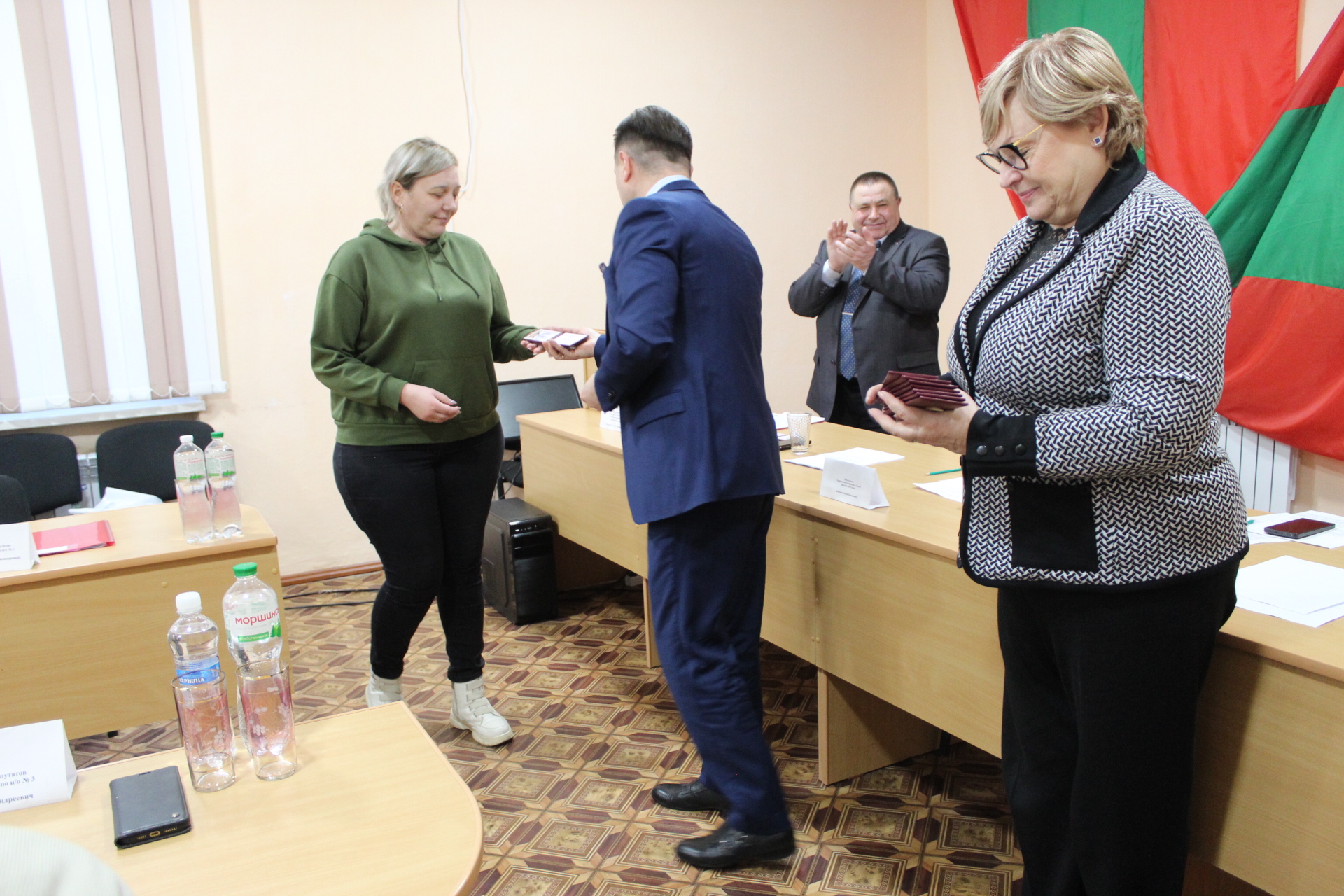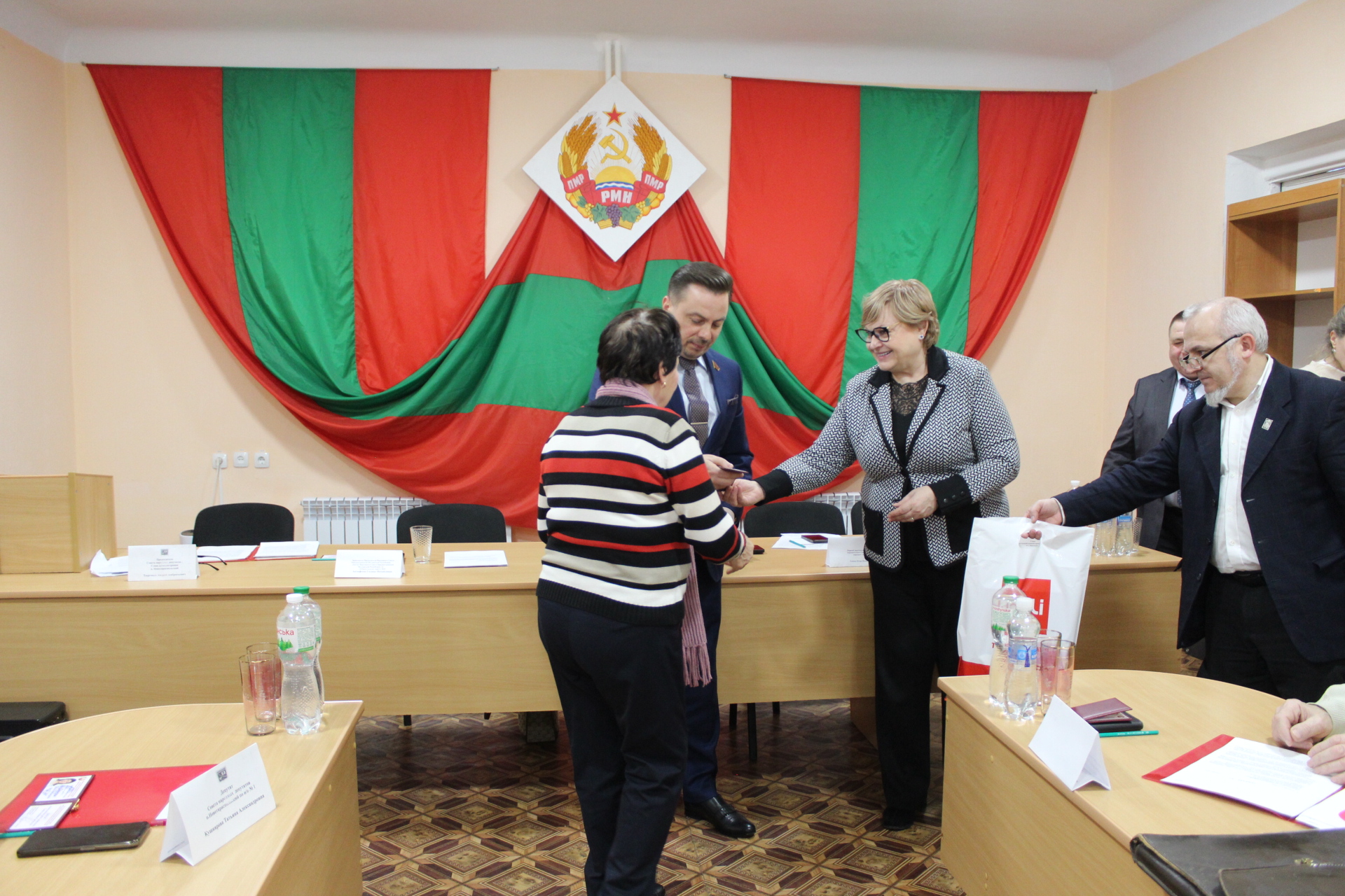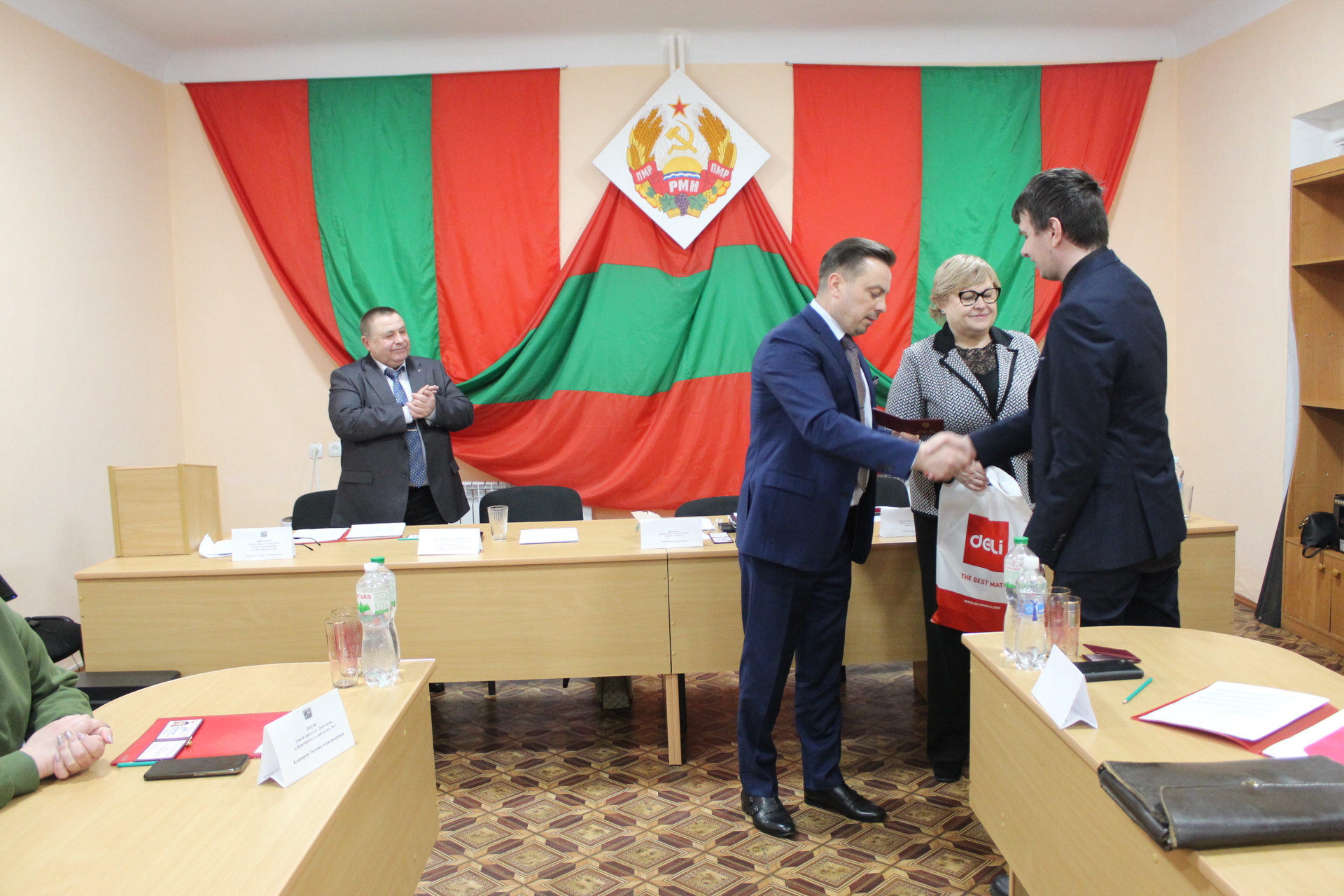 В завершение сессии Андрей Волкович, Галина Антюфеева и Игорь Единак вручили впервые избранным депутатам Совета народных депутатов посёлка Новотираспольский депутатские значки и удостоверения. Председателю Совета народных депутатов – главе администрации посёлка Новотираспольский Андрею Тыргоалэ была вручена почётная грамота.